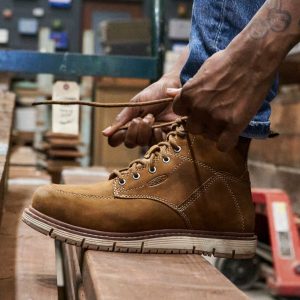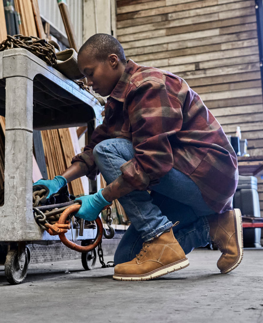 All-leather. with an air-infused midsole. lightweight safety features. and women’s-specific fit. this 6 waterproof work boot feels and performs like no other.