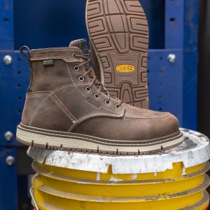 All-leather. with an air-infused midsole. lightweight safety features. and women’s-specific fit. this 6 waterproof work boot feels and performs like no other.